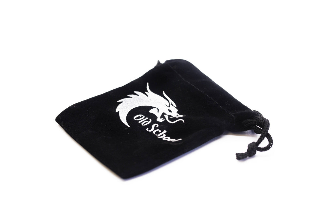 - Retail orders come with an exclusive Old School Dice & Accessories black velvet dice bag that holds the 7-piece set.